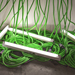 Extension cords, fluorescent light fixtures, power, wood, hooks