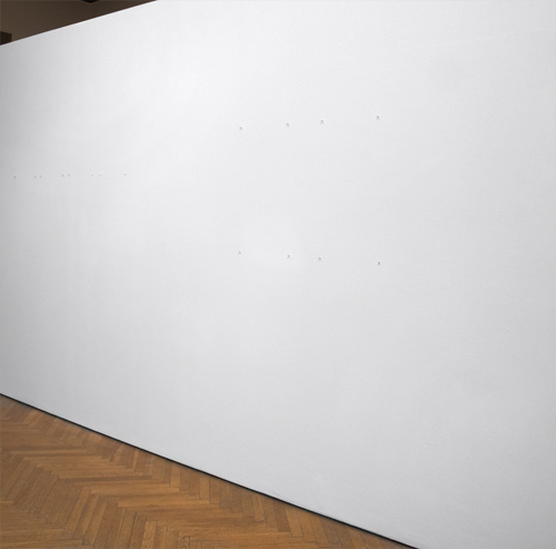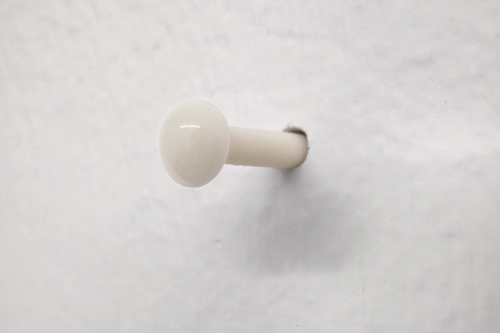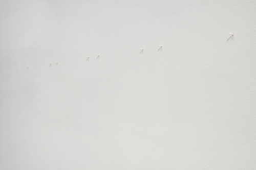 I rendered nails using porcelain, a precious art material, to give the nails a chance to be what they uphold. They are inserted into holes left from the previous exhibition.